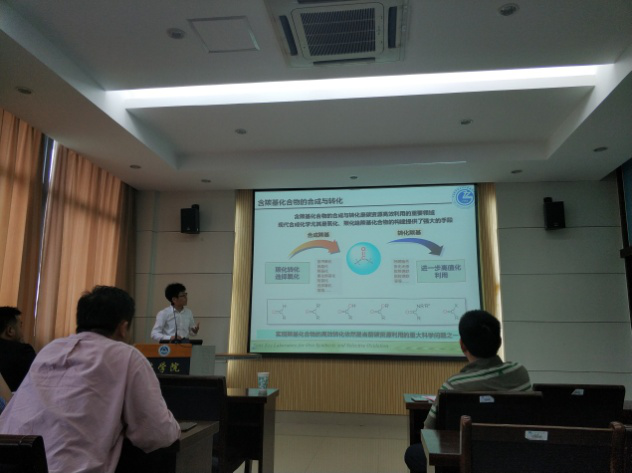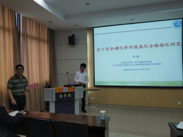 2018年5月22日下午,中科院兰州化物所苏州研究院特聘研究员刘超博士受邀来药学院作了一场题为“基于有机硼化学的羰基化合物转化研究”的学术报告,报告由副院长史劲松教授主持,学院师生40余人参加了学术交流。