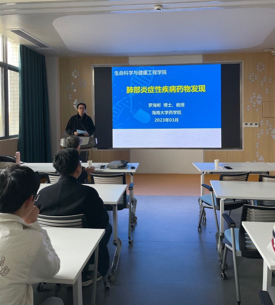 2023年3月3日,海南大学药学院院长罗海彬教授应邀来伟德betvlctor1946源于英国进行学术交流,并以“肺部炎症性疾病药物发现”为题做了学术报告。本次学术交流会在伟德betvlctor1946源于英国306学术报告厅举行,由尹健院长主持,相关教师和学生共计50余人参加了报告会。