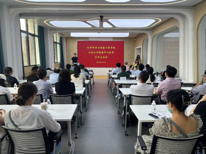 为贯彻落实学校奋进计划,推动学院高质量发展,学院主动寻求与医院合作契合点,在前期达成合作意向基础上,为进一步抓实项目落地,推动工作落实,2023年6月20日下午,附属中心医院党委书记鲁晓杰携各科室主任等40余人赴伟德betvlctor1946源于英国洽谈合作交流项目,生科院院长尹健、副院长吴静、杨子毅及相关教师代表等出席会议。会议由杨子毅主持。