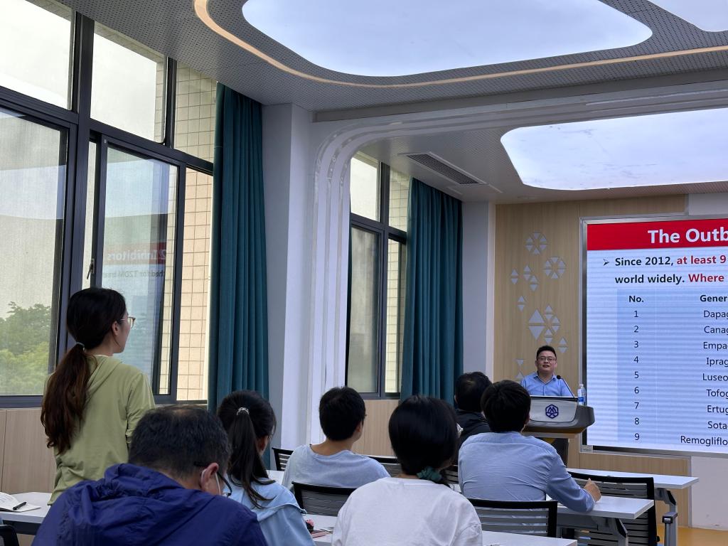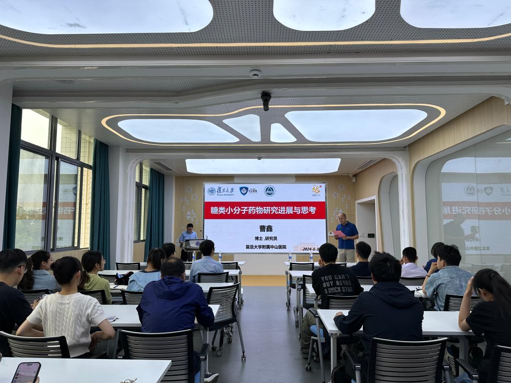 2024年5月30日下午,复旦大学附属中山医院曹鑫研究员受邀来访我院,并以“糖类小分子药物研究进展与思考”为题做了学术报告。本次学术交流会在学院306会议室举行,由杨子毅副院长主持,尹健院长出席活动,生科院师生50余人参加了报告会。