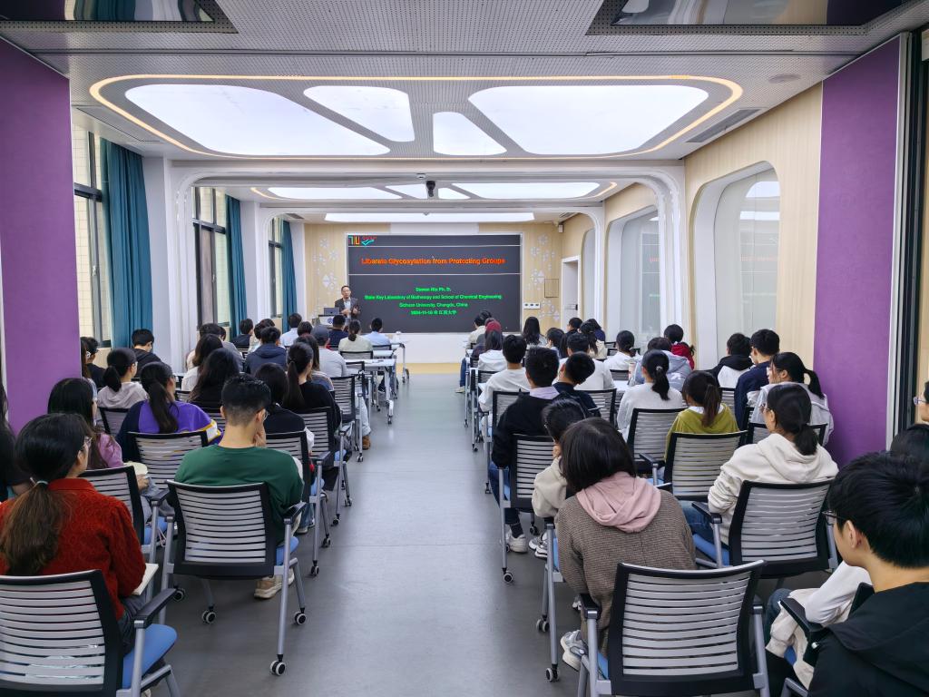 11月16日上午,四川大学化学工程学院副院长钮大文教授受邀来到伟德betvlctor1946源于英国,为学院师生带来了一场以“Liberate Glycosylation from Protecting Groups”为题的学术报告。讲座由院长尹健主持。