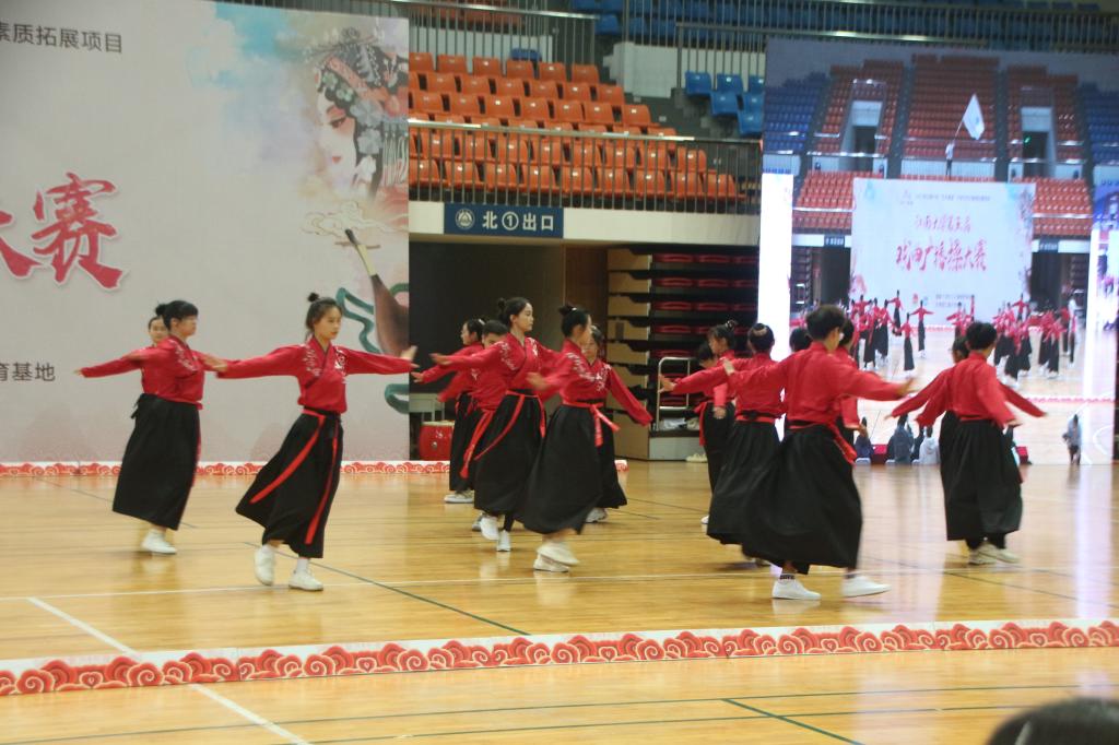 音乐响起之时,同学们身着统一服装,规范入场,动作整齐,井然有序,精神饱满。在自由运动环节,我院更是创新性地融入了太极元素,兼含虚实刚柔,开合并济的“本一”之色,更展现传统戏曲之美,灵动有趣。整场表演更是姣姣如画,无异于一场视听盛宴。
