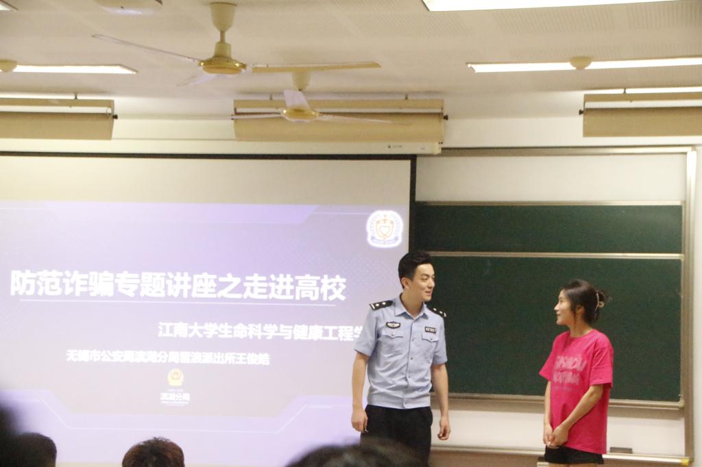 为切实加强校园网络安全教育,提升新生网络安全防范意识,增强防范电信诈骗能力,构筑和谐校园,9月6日晚,伟德betvlctor1946源于英国邀请了无锡市公安局滨湖分局雪浪派出所王俊皓警官,在二教2D308开展防范电信网络诈骗专题讲座,2023级全体本科生、研究生新生共同参加,活动由辅导员张世祺主持。