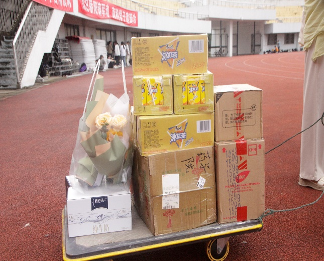 随后,老师们向教官送上鲜花,并向全体同学分发饮料、水果、点心等慰问品,为认真负责的教官和刻苦训练的同学们送来关怀。最后,全体人员进行了合影留念。