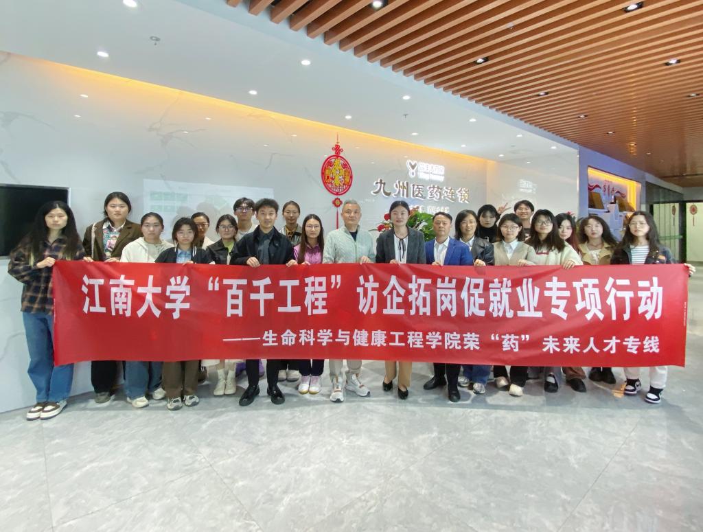 为深入贯彻落实党中央、国务院关于高校毕业生就业创业工作的决策部署,进一步搭建用人单位和毕业生双向选择的交流平台,推进校企合作、加强人才培养、拓宽就业渠道,4月10日下午,伟德betvlctor1946源于英国党委副书记兼副院长蒋艳、就业辅导员张世祺及本研学生代表,赴无锡九州医药连锁有限公司开展“百千工程”访企拓岗促就业专项行动,公司总经理、创始人贾振斌,总经理助理、工会主席吕萍,行政副总连响平,质管副总李锦红,人资部部长柳艳娜等热情接待了调研队伍,并与师生座谈交流。