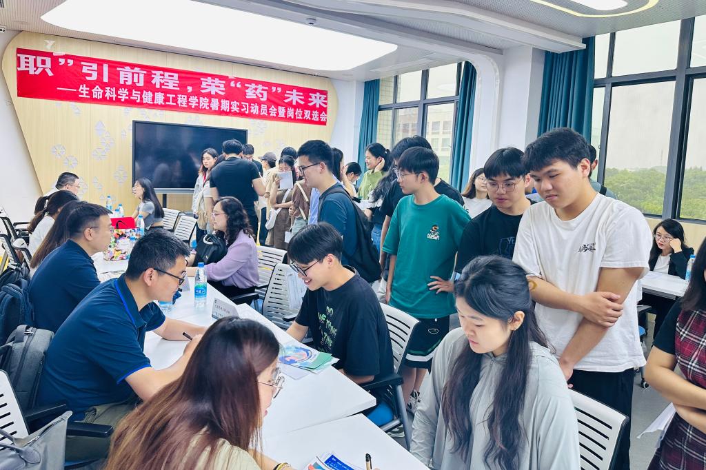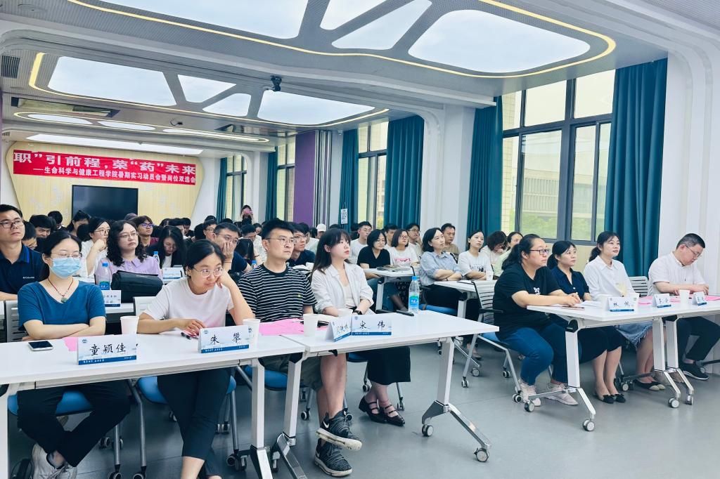 学院高度重视本次活动,紧密围绕学院专业群、行业产业链,吸引了多家优质企事业单位参与实习招聘双选。无锡市药品安全检验检测中心、无锡药明生物技术股份有限公司、无锡药明合联生物技术有限公司、罗益(无锡)生物制药有限公司、长风药业股份有限公司、江苏知原药业股份有限公司、璞固生物科技(无锡)有限公司、无锡观合医学检验所、无锡济煜山禾药业股份有限公司、百济神州生物科技有限公司等医药类单位,提供实习岗位近百个。各单位负责人从单位概况、企业文化、招聘岗位、发展优势、福利保障等方面,作了详尽的招聘宣讲。活动中,李会、蒋艳为企业导师代表颁发聘书。