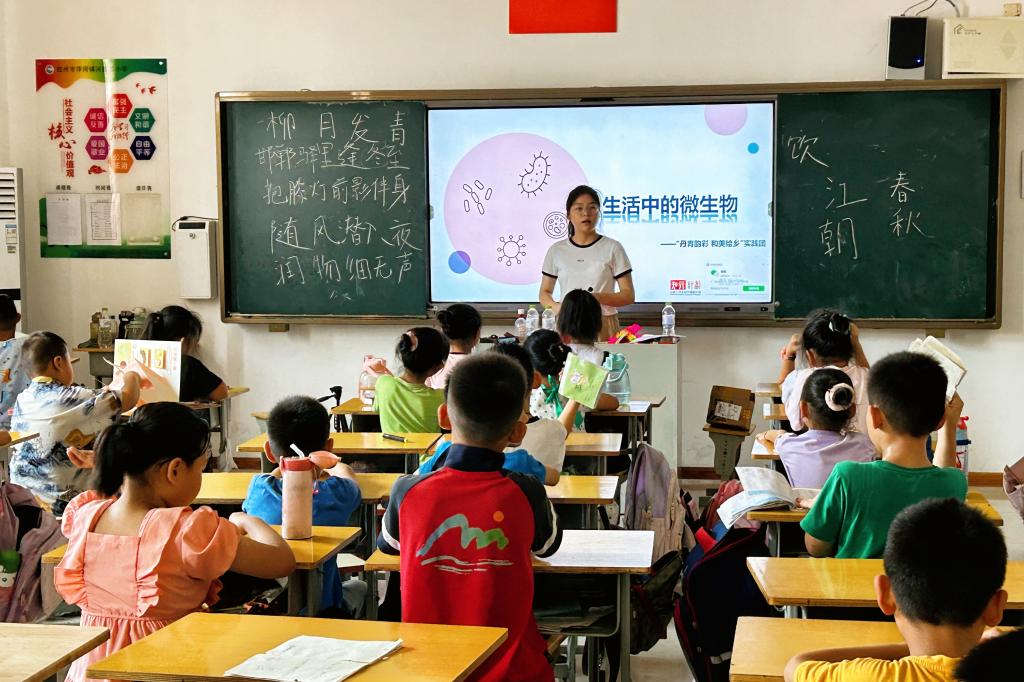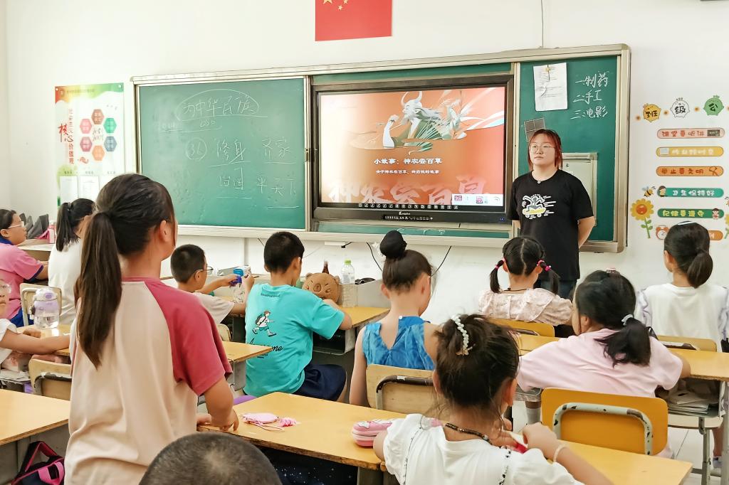 在课堂上,实践团的成员们充分发挥自己的专业优势,为孩子们讲授中草药、微生物、车辆、音乐等课程,他们注重培养孩子们的思维能力和创造力,鼓励孩子们大胆表达自己的想法和观点。将枯燥的知识点转化为生动有趣的互动游戏,让孩子们在轻松愉快的氛围中掌握知识。