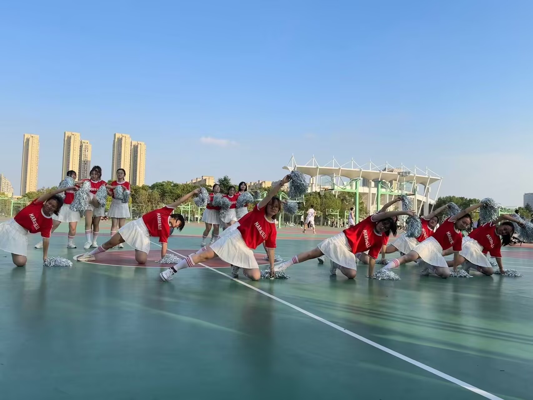比赛正式开始后,我院啦啦操队员以其整齐划一的动作和饱满的精神状态给观众留下了深刻的印象。她们的舞蹈编排富有创意,将啦啦操的经典动作与现代舞蹈元素相结合,呈现出一种全新的视觉效果。队员们手中的花球挥舞得如同一道道绚丽的彩虹,每一个跳跃都充满了力量,每一个转身都尽显灵动之美。他们用青春的活力和热情诠释着啦啦操的魅力,赢得了现场观众的阵阵掌声和欢呼声。
