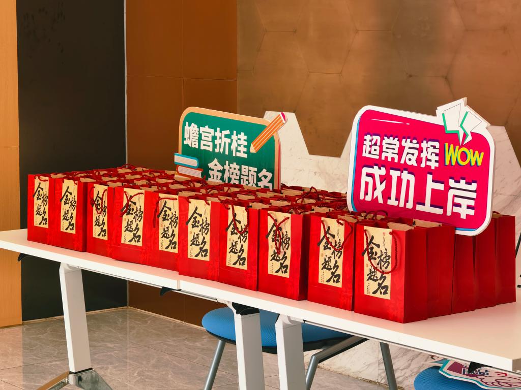在温馨的氛围中,学院领导和老师们亲自为考研学子分发了精心准备的礼品及贺卡。祝愿大家心想事“橙”,好运“旺旺”,“巧克”难关,“啡”常顺遂,“暖”心相伴。每一份礼品都承载着学院对学子们的深情厚意与美好祝愿。老师们在分发礼品的同时,还与学生们进行了亲切的交谈,勉励他们坚定信念,不畏挑战,用辛勤的汗水浇灌梦想之花,书写属于自己的光辉未来。