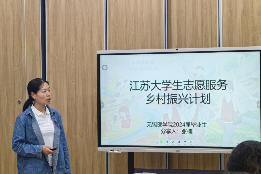 乡村振兴计划志愿者、无锡医学院2024届研究生张楠,围绕乡村振兴计划的实施细则、岗位选择要点以及发展前景三个方面,进行了细致入微的解答,并为同学们传授志愿填报技巧。她鼓励同学们投身基层服务丰富人生经历,并结合自身职业规划精准定位志愿岗位。