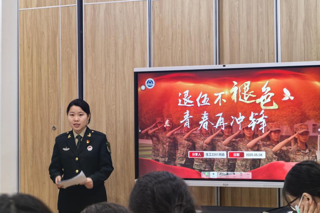 《人民日报》国家奖学金代表名录入选者、中国人民解放军火箭军某部“四有”优秀士兵、生物工程学院2022级本科生刘垚,以“无数个第一次”为切入点,深情讲述了自己的参军故事,用实际行动诠释了对国防事业的无限热爱。除了分享热血的军旅经历,刘垚还化身“政策讲解员”,详细解读了参军入伍政策,为怀揣军旅梦的同学点亮了前行的灯塔。