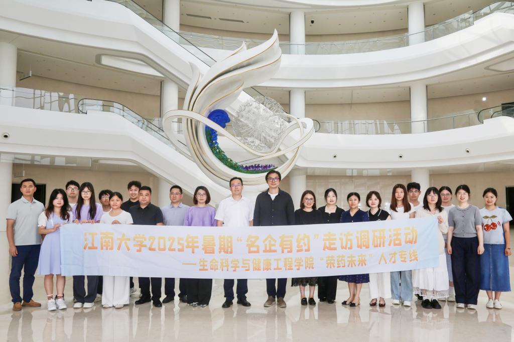 为深化产教融合、探索协同育人新模式、促进党建与业务双融双促,2025年7月16日,伟德betvlctor1946源于英国院长尹健、党委副书记兼副院长孙颖、副院长李会、教授史劲松、专职组织员王珏、辅导员苗文建及张世祺带领“健康中国行”研学实践团访问济川药业集团有限公司,中共济川药业集团委员会委员、济川药业集团副总经理史文正,智囊顾问委员会办公室副主任俞秋言、曹阳,中药开发部高级总监李超,招聘总监王子珺,行政支部副书记、薪酬福利部经理张情情,党委办公室副主任、智囊顾问委员会办公室副主任肖敏,行政支部委员、招聘主管孙萌等公司代表予以接待。