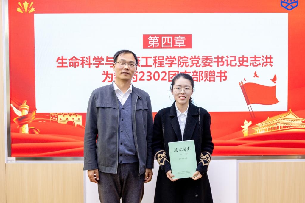 随后,史志洪为制药2302团支部赠书《雁过留声》。这本书是对秦伯益院士专题演讲、会议发言、记者采访等内容形成的合集,制药工程2302班全体同学将在传阅过程中进一步学习秦伯益院士的科研精神和价值追求。