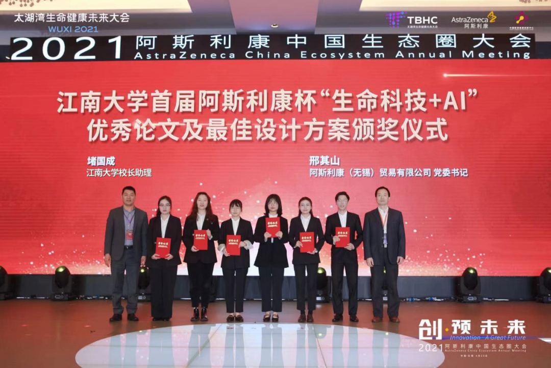 4月23日,获得“最优设计方案奖”和“最优论文研究奖一等奖”的团队代表还受邀参加了在无锡市新吴区举办的“2021阿斯利康中国生态圈大会”,伟德victor1946校长助理堵国成和阿斯利康(中国)贸易有限公司党委书记邢其山共同为获奖学子颁奖。