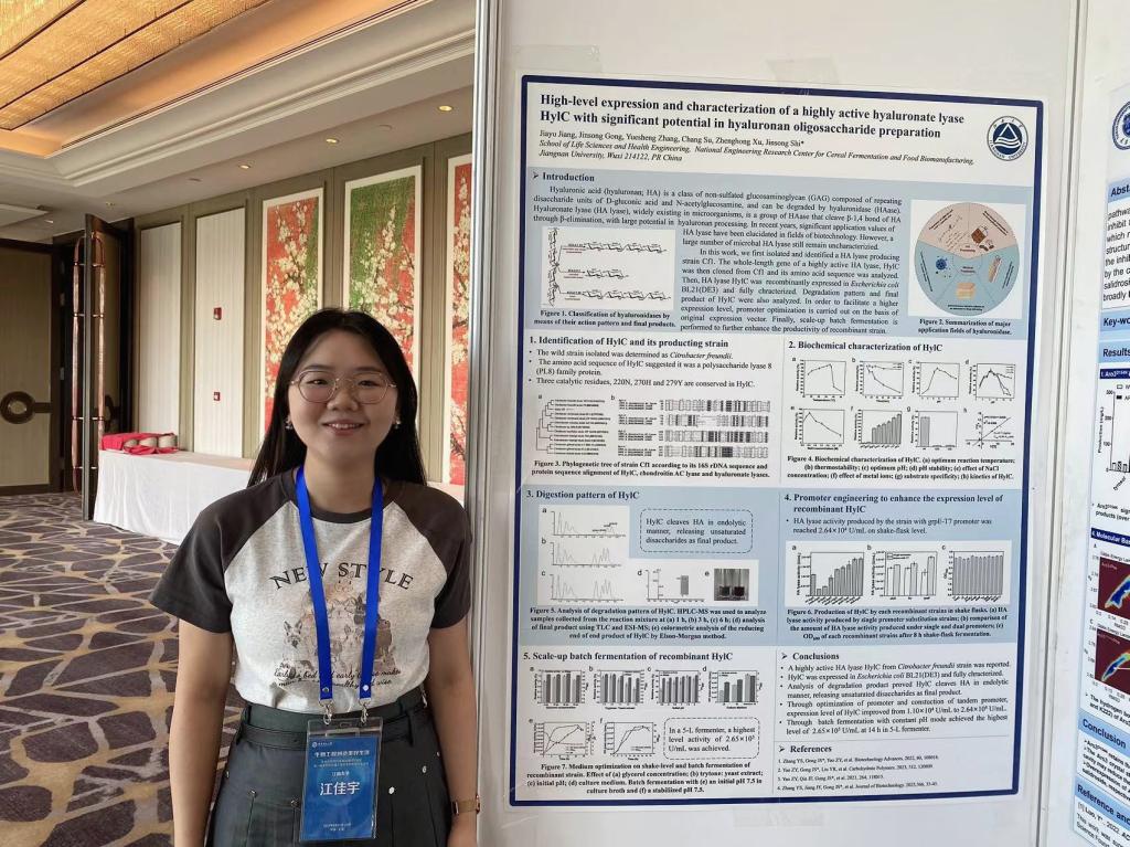 我院2022级药学研究生江佳宇在导师龚劲松教授、苏畅博士后的指导下参加此次会议,以《High-level expression and characterization of a highly active hyaluronate lyase HylC fromCitrobacter freundii》为题做学术报告及墙报展示,并获得“优秀墙报奖”,充分展示了我院学子的学术风采。