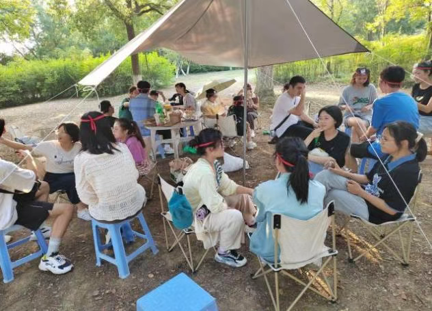 当日下午14时,药学2201班的同学们在贡湖湾湿地公园集合,班委们提前搭好吊扇,准备完烧烤架。负责烧烤的同学专心做出佳肴,其余的同学在组织委员和心理委员的带领下有条不紊地开展不要做挑战和UNO牌等游戏。大家各显神通,绞尽脑汁地取得胜利。文体委员弹奏吉他,用音乐作为粘合剂,来为游戏的进行增添氛围感。欢笑声此起彼伏,预示着活动的圆满成功。