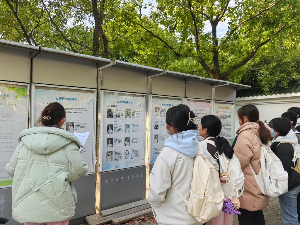 进入笃学楼后,同学们就被温馨、舒适的环境所吸引,这里不仅布置得雅致大方,还充满了人文关怀的气息。讲解员向新生们介绍了心理健康中心的基本情况和功能布局,强调了心理健康在现代大学生活中的重要性。随后带领大家展开了一项趣味性活动,同学们将自己近期最为烦恼的问题写在了便签纸上,并贴在了展示板上。这些问题涉及学业压力、人际关系、自我认知等多个方面,展示了新生们在适应大学生活过程中所面临的种种挑战。