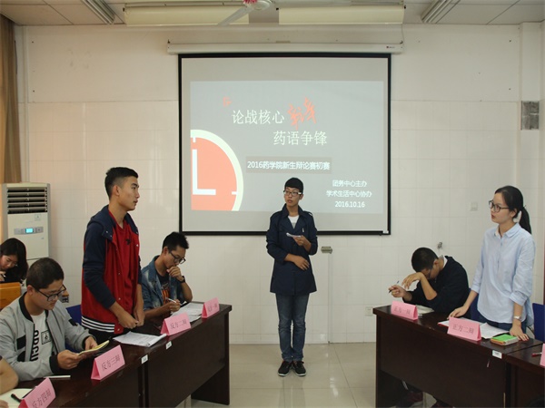 古有卧龙诸葛舌战群儒,今有群英荟萃慷慨陈词。10月16日下午1:00,由药学院团务中心主办、学术生活中心协办的“论战核心,药语争锋”辩论赛在药学院513举行。本次初赛由4个辩论组参与,特邀院辩论队队长陈紫婷、院辩论队队员陈伟、梁天健担任评委。