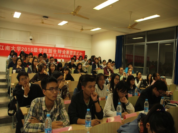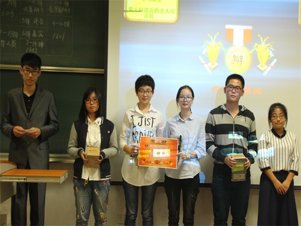 比赛伊始,执行主席李金介绍到场评委和嘉宾,并向在座观众阐述本次比赛规则及流程。伴随着热烈的掌声,决赛正式开始。本场比赛辩题为“爱上好朋友的恋人应不应该追”。首先由双方一辩开宗明义,正方一辩率先立论,提出“爱不是索取和占有”、“遵从自己内心想法”等观点严谨立论,反方四辩犀利发问,步步紧追。转而反方立论,从道德利害方面逐步瓦解对方言论,质询环节更是火药味十足,使辩论场迅速升温。第二环节则由双方二辩补充发言,激烈对辩,在对辩中双方逻辑清晰,思维缜密,场面十分胶着。紧接着,由三辩向对方的一、二、四辩盘问并小结,问题接二连三,层层递进。自由辩论环节,正方事实和道理结合,反方也是旁征博引。最后由双方四辩总结陈词,四辩针对辩论赛中出现的问题提出了自己的理解,并强调了己方的观点。比赛就此结束,四十分钟的时间双方都妙语连珠,带给在场观众一场视觉和听觉上的盛宴。最后,评委分别就本次辩论进行了精彩的点评,经商讨后,主持人宣布反方“有理队”获得胜利,正方曹筱玲荣获最佳辩手,并由学生会主席董玉秀为获胜选手颁发奖品奖状。精彩并未结束,最后由大一和大二带来的表演赛同样的慷慨激昂,为这次辩论赛画上了圆满的句点。