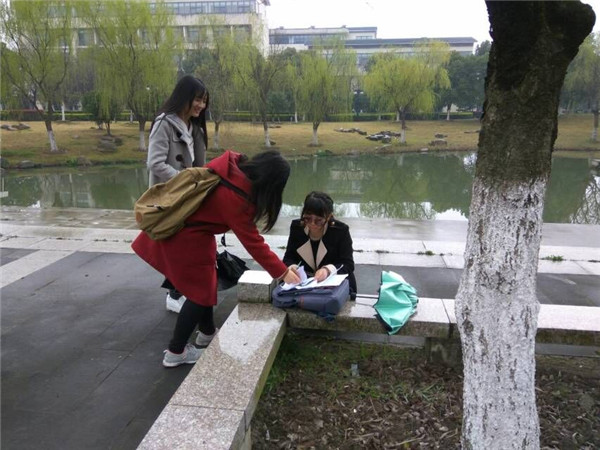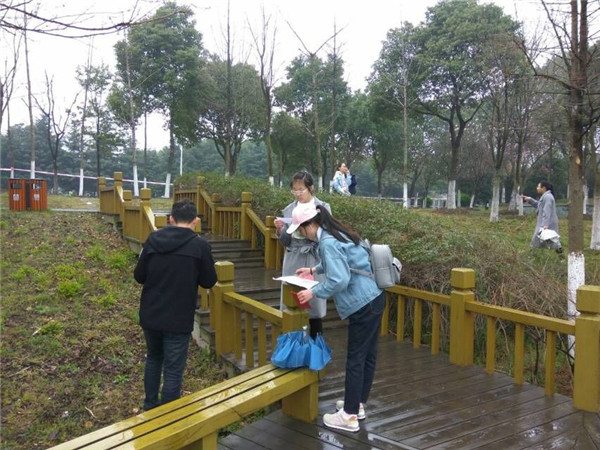活动开始后,校园内开始飘起了小雨,但天气并没有阻挡选手们对活动的热情。参赛选手们聚集在图书馆西面的“学海无涯”,从抽签选组,再听取规则、分发活动用品,每个选手的脸上都洋溢着欢乐的笑容的,个个都跃跃欲试。首先他们根据自己领到的第一张照片,赶往照片上的地点,这些地点或散落在北区,或分布在南区,各组成员携手相进,开始仔细探寻校园。