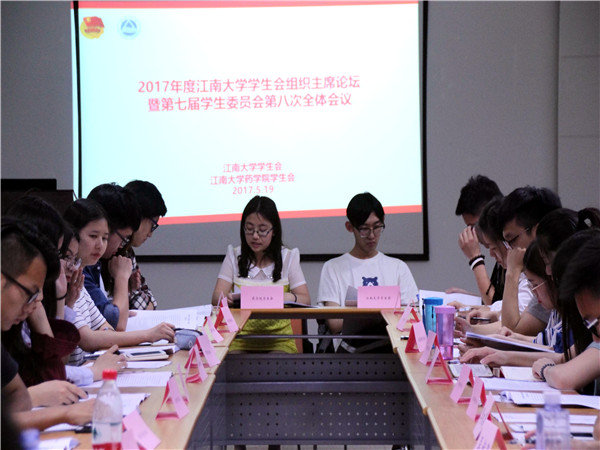 2017年5月19日晚七点,伟德victor1946学生会组织主席论坛暨伟德victor1946第七届学生委员会第八次全体会议在北区大学生活动中心F310会议室隆重举行。本次会议由伟德victor1946学生会主办,药学院学生会承办,伟德victor1946学生会主席、伟德victor1946研究生会主席、各校级组织负责人、各学院学生分会主席以及其他学生委员会委员参加了本次会议。