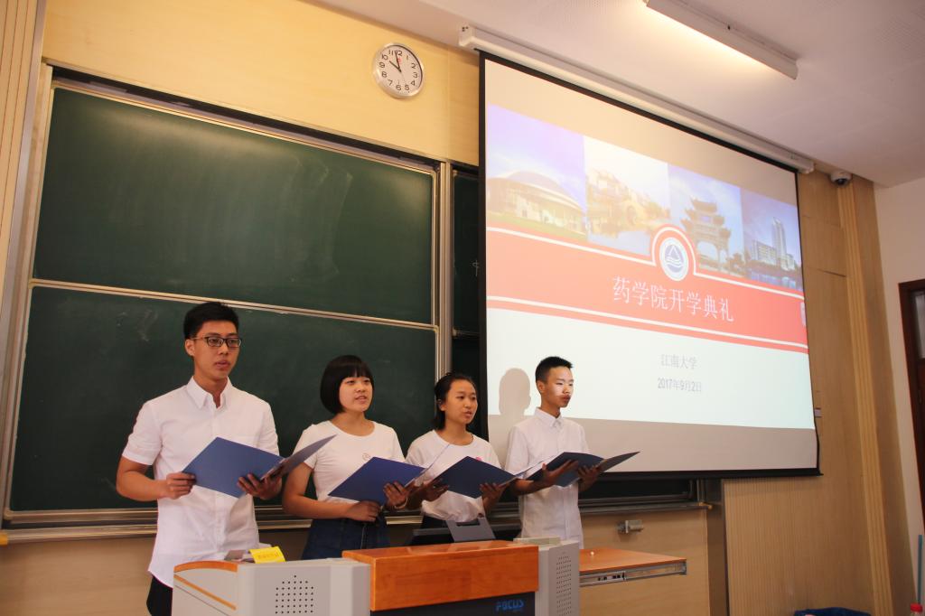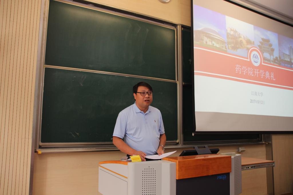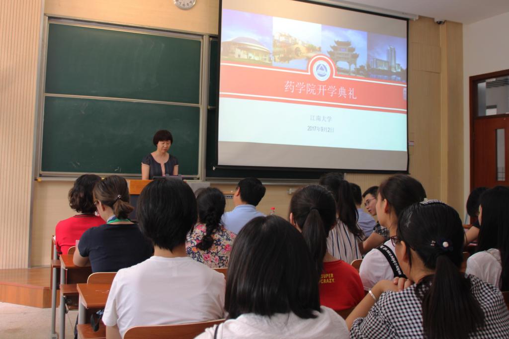 9月2日,药学院2017级开学典礼在1A105隆重举行。会场邀请了党委书记姚剑英,学院副院长陈敬华,学院副院长史劲松,学院副院长李会,制药工程系系主任张艳,教授金坚、冯柏年,分团委副书记兼17级辅导员赵丽敏,16级各班班主任及各班副班,以及优秀校友淤江鸿,宋亚超等出席,药学院副院长单筱婷担任主持。