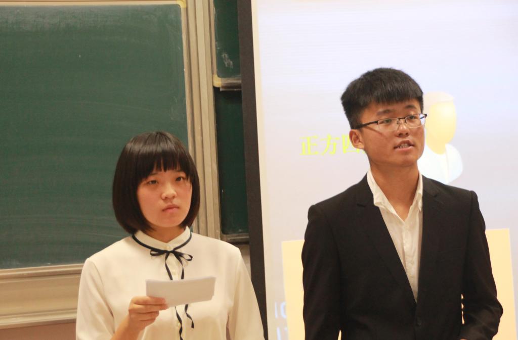 活动伊始,执行主席介绍了比赛细则以及本次辩论赛的辩题“选择越多越痛苦,还是选择越少越痛苦”。伴随着热烈的掌声,比赛正式开始。双方选手在立论、驳立论环节中,思路清晰,引经据典,使全场范围迅速升温。随着比赛的进行,辩论赛开始进入白热化阶段,双方辩手进行自由辩论环节。正反方辩手们充分发挥了团结合作的精神,观点互补,层层递进,完美的展示出自己的思辨能力。最后环节由双方四辩总结陈词,四辩针对辩论赛中出现的问题提出了自己的理解,并强调了己方的观点。整场比赛中双方都唇枪舌战,妙语连珠,充分展示了辩论的风采。之后评委对本场比赛作出点评,徐薇瀛从比赛的七个环节分别进行分析,点出双方在每个环节中的优缺点,;梁天健对辩手们给予肯定,希望他们再接再厉。最终经评委商定后,反方丑拒队获得优胜队称号。反方三辩滕子皓获得最佳辩手称号。药学院学生会主席徐铁松,副主席佟悦分别为他们颁奖,至此辩论赛圆满结束。