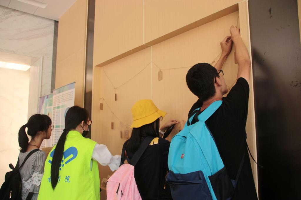 学生宿舍门口设置食品、生工、化工、医、药学院的联合新生咨询引导处,身着绿色服装的志愿者们不断往返于宿舍与学院之间,为新生及家长指引正确的方向并答疑解惑。学院门口,不少新生在院旗及药学院特制的“伟德victor1946小萌新学生证”前拍照留念,院旗设计的美观大方,而“伟德victor1946小萌新学生证”则标志着他们正式成为伟德victor1946的一员,给予新生以无限的荣誉感与归属感。药学院大厅内,志愿者们别出心裁设计了新生开学寄语墙,在志愿者的引领下,新生们纷纷写下了对自己未来的鼓励、对江大的喜爱等内容丰富的寄语卡片,标志着他们在药学院生活的正式开始。在学院报到处305,各班副班主任认真热情且有序地帮助新生完成信息登记、采集等报道程序。随后发放的文件袋不仅装着新生需领取的文件,更展示着药学院对新生的深深情意。除此之外,在药学院306还设置了新生家长休息室,大屏幕上滚动播放伟德victor1946及学院的相关视频。期间,志愿者们及时给家长送上饮用水并答疑解惑,使远道而来的家长可以好好放松一下并深入了解伟德victor1946药学院。
