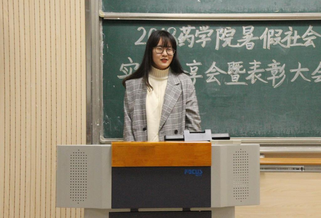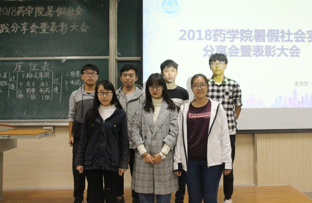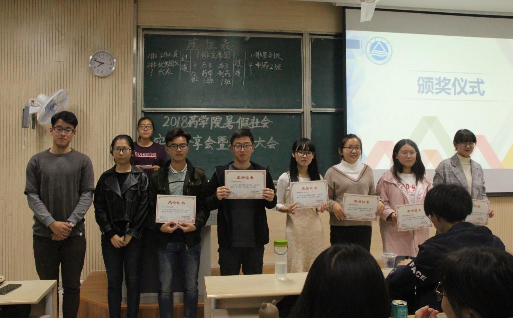 为帮助大一新生深入认识和了解社会实践活动,引导同学们积极参与其中,同时表彰优秀实践队伍。药学院学生会于10月18日晚6点半在2c206教室举办2018年药学院暑假社会实践分享会暨表彰大会,出席本次活动的嘉宾有药学院学生会主席李金,副主席张宁珊、田红茹、王铮,优秀团队代表和药学院全体大一新生参与本次活动。