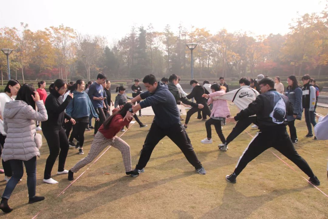 活动伊始,为使大家迅速进入活动状态,同学们首先开始了紧张刺激的大风吹游戏。随着气氛的渐渐熟络,同学们在教练的指挥下进行了分组,并别出心裁设计了队名、队歌、队徽等。随着“荣耀”队,“我是你爸爸”队,“我是这条街最靓的仔”队,“八人养老”队纷纷亮相登场,同学们充分展现了属于自己的团队文化和精神。在稍作休息后,同学们开始了接下来的挑战。“信任托举”环节,在一次次失败中不断进步到最终的成功,同学们之间的距离不断拉近;在脑洞大开的“驿站传书”中,同学们在一次次的尝试后各显身手,凭借着各自的智慧探索难题,协作意识和团队精神也得到了进一步加深。