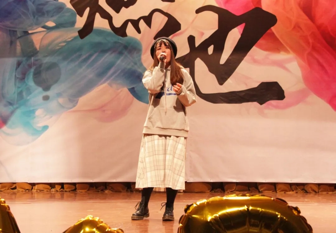 首个表演便是三种语言的串烧,不管是动人的普通话,还是激情的粤语,亦或是清脆的英语,都让观众大饱耳福。而紧随其后的小品私房钱展现了一个在争吵中逐渐走向幸福团结的家庭,更融入了日常生活的细小情景,深入人心。在最后,私房钱剧组向台下撒下了新年的祝福,更撒出了晚会的福利之一。更令人惊喜的是,助阵嘉宾——艺术团团长冉诗艺的到来,一曲《房间》,让同学们沉浸其中,将现场的气氛带向了高潮。