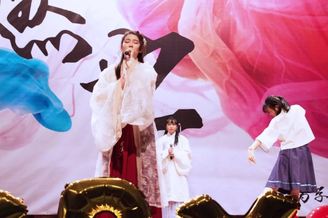 最后的火力全开环节,由吉他社带来热情弹唱《counting stars》,在动人的曲调中思考生命的真谛,不管酸甜苦辣,我们都要继续坚持走下去。弹唱之后,是由六位古风爱好者们带来的唱跳歌曲《锦鲤抄》。长扇挥动亦如水袖翩翩,带人进入百年前的世界,沉醉其中。回过神后,我们的思绪又在逯书铭,魏华婷同学演唱的《光年之外》中飘向浩瀚宇宙。又在恍惚之中,进入了《新琅琊榜》的世界,不同于电视剧的全新结局也带给我们更多欢笑,将晚会又一次推入高潮。