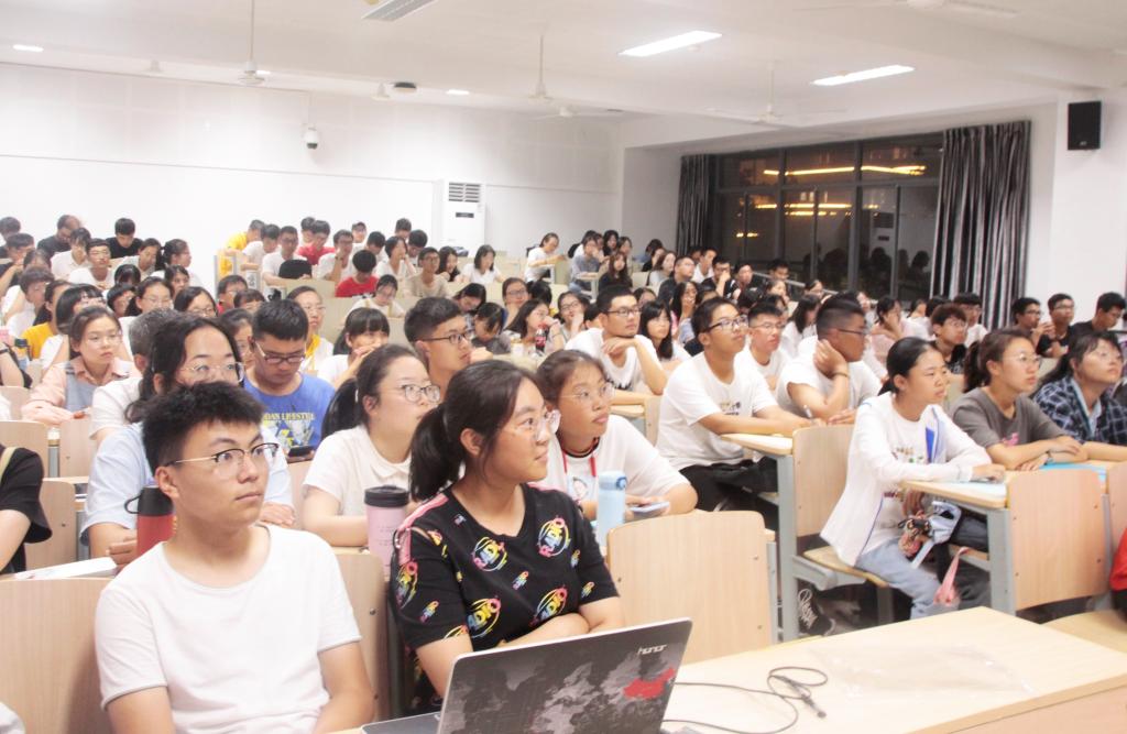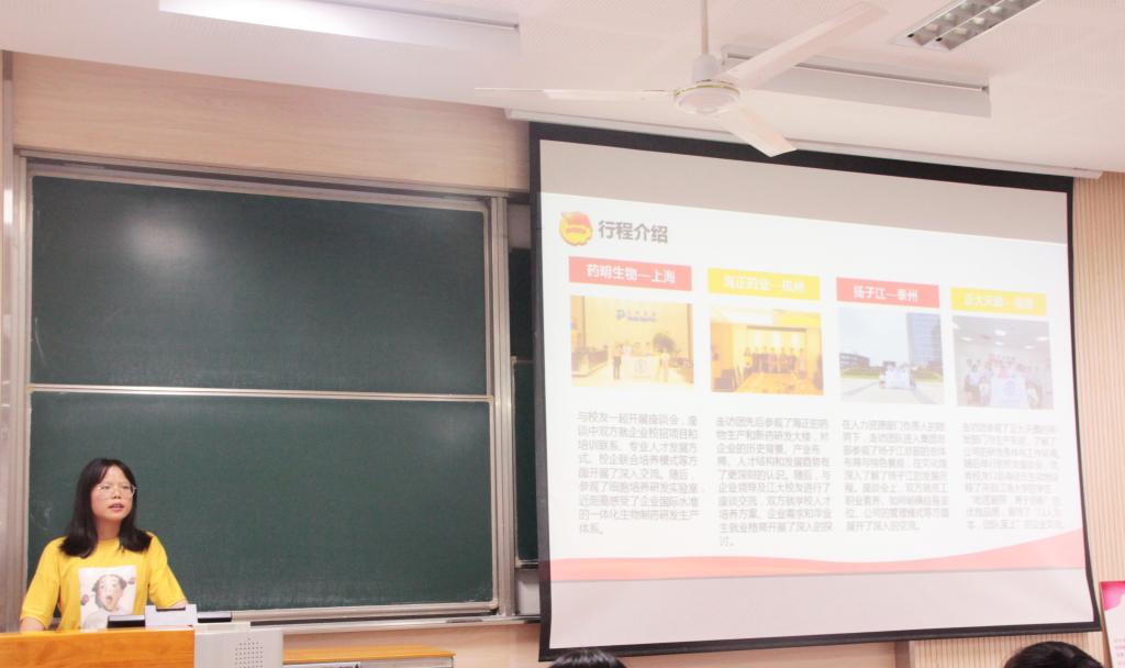 为帮助大一新生深入认识和了解社会实践活动,引导同学们积极参与,同时表彰优秀实践队伍,并在新中国成立70周年之际,表达药院学子的青春热血与爱国激情,我院于9月17日晚6点半在2c202举办“青春告白祖国”——2019年药学院暑假社会实践分享会暨表彰大会,由寒假优秀团队代表赵颖、滕子皓、曾以妍、任诗瑶、刘春芳、董祥晖、叶芸慧作为分享人,药学院分团委副书记任学敏,药学院学生会主席曾开,副主席金兰、李菲、滕子皓担任嘉宾,刘顺担任主持人,我院全体大一新生参与本次活动。