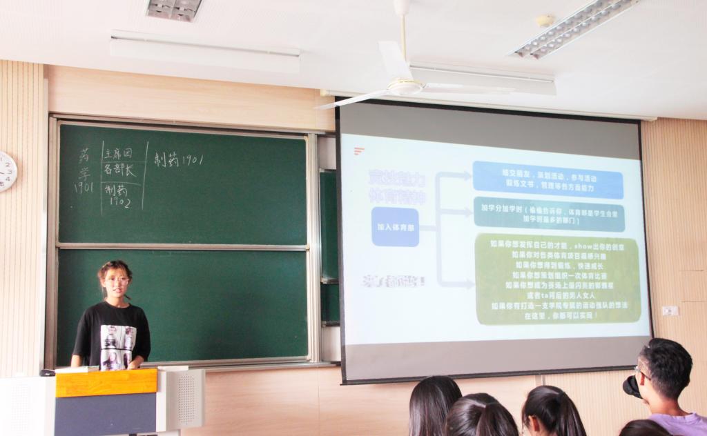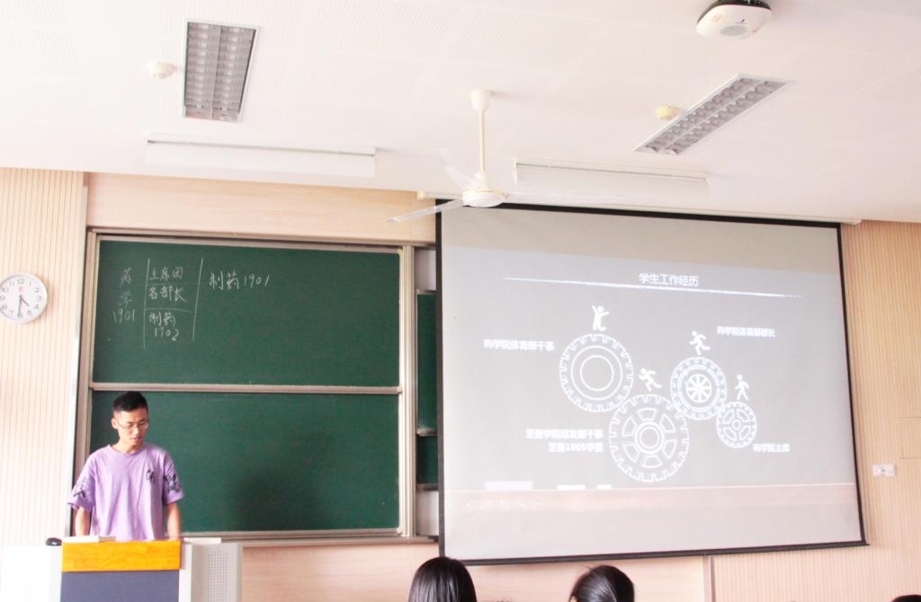 为帮助新生清楚的了解我院学生会,同时也为药学院学生会充实优秀人才,确保学生工作的可持续发展,9月18日下午14:30,药学院第八届学生会招新宣讲在2C316成功举办。出席本次活动的有主席团成员曾开、李菲、金兰和滕子皓,各部门部长和副部,以及2019级全体新生。