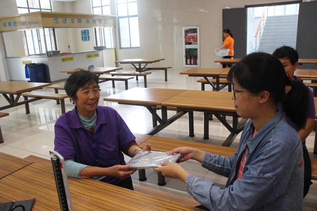 夕阳无限好,人间重晚晴。在重阳佳节到来之际,为培养青年大学生的社会责任感、弘扬尊老敬老的中华传统美德,我院组织了志愿者们来到了四食堂,去了解、体验老员工们的工作与生活状态,同时代表江大学子对他们表示真挚的关心与问候。