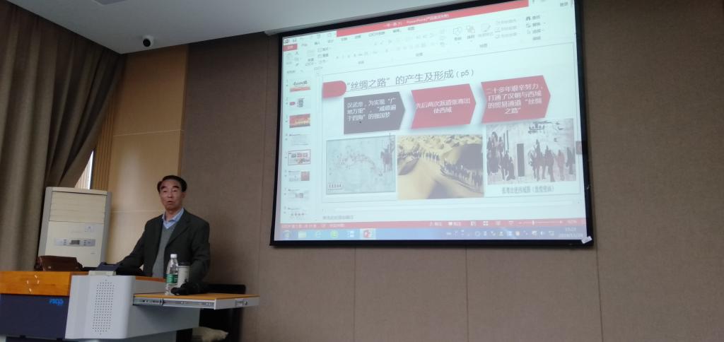 活动开始,主持人郑可欣对金其祯教授的生平进行简要介绍,随后,金其祯教授以“古代丝绸之路”开题,主要讲述了古代丝绸之路名称的由来、产生形成,繁荣兴旺等六个方面,他在介绍丝绸之路历史的同时,穿插了一系列故事如郑和七下西洋等,另外,他特别强调了古代丝绸之路在促进中外贸易及文化交流方面的作用,加深了同学们对古代丝绸之路的认识。