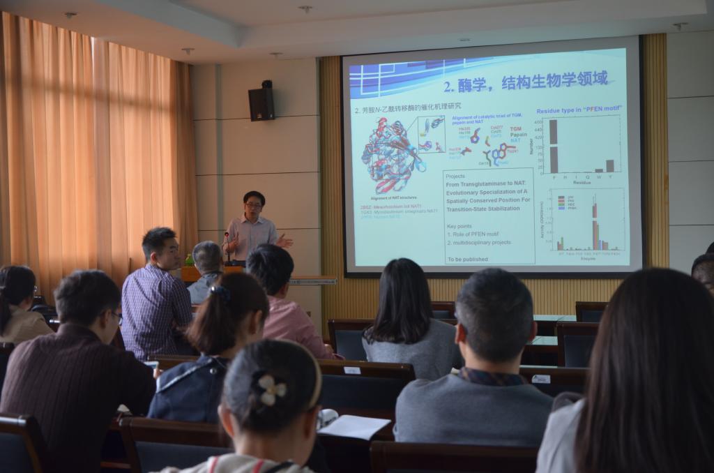 2016年10月10日下午两点,来自巴黎巴斯德研究所的博士后徐锡明在药学院306会议室为大家带来了一场精彩的学术报告。报告题目为“芳胺N-乙酰转移酶:药物与药物相互作用,结构和催化机理”。学院相关老师和部分研究生参加了此次讲座,报告由金坚院长主持。