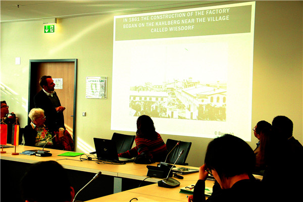 2月6日抵达德国后,访学实践团受到了无锡友好城市德国勒沃库森市市长 RICHRATH先生的盛情接待。RICHRATH先生向访学实践团介绍了勒沃库森市的历史沿革以及近年来勒沃库森市经济、工业和文化的飞速发展。随后,在Chempark 化工园公共关系部部长Zöller先生带领下,访学实践团一行学习考察世界知名药企拜耳股份公司(Bayer AG)所在的Chempark化工园,了解其基础设施建设与企业产品。园区设有50家公司、200家服务业,拜耳股份公司(Bayer AG)作为园区带头企业,为化工园发展与壮大打下坚实基础。园区集合了药品合成、生产、包装及销售多项功能,药品成品出口采用地下管道装置,药品装配由机械手完成,科技化和信息化程度较高。团组成员还参观了可以同时容纳一万余人培训的员工培训专用楼,体现了园区对于员工队伍建设与发展的重视。