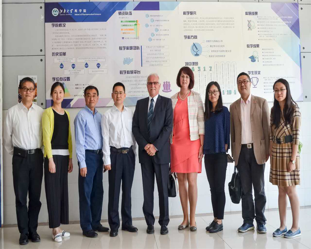 近日,德国勒沃库森市代表团曼弗雷德•赫尔波斯海默尔教授一行5人来访药学院,双方就医药行业的国际交流与合作、大学生出国访学与留学等工作进行了交流探讨。药学院副院长史劲松教授、党委副书记兼副院长单筱婷、冯柏年教授、院长助理周娟副教授等6名教师参加了本次座谈会。