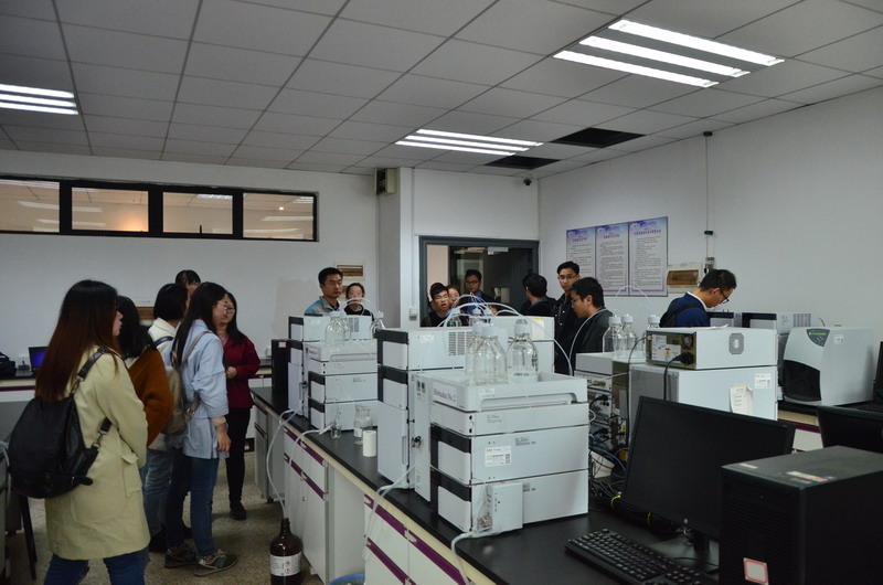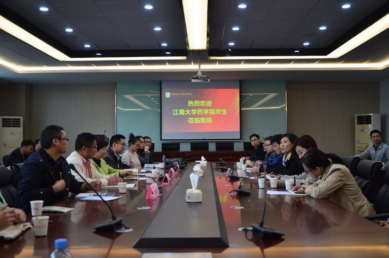 活动的第一站是到中国药科大学药学院参观交流。在药大老师的引导下,师生党员先后参观了基础医学与临床药学中心模拟药房、药学院实验教学中心和GMP实训中心。通过参观,学院师生了解到模拟药房建有传统中药房、现代化中药房和西药房,这里既有传统的各类药柜、名贵中药和称量仪器,也有现代化的自动送药机、加药机等设备,其中西药房的仿真人可以根据系统设置模拟人的一些病症,从而更加逼真模拟给药及其他临床药学的实践操作。药大实验教学中心是药学国家级实验教学示范中心,建有药理学基础实验室、药理实验室、药剂实验室、药物分析实验室、药化实验室、VR体验区等,同时配备着大量先进的大型仪器设备和实验教学设备。药大GMP实训中心在药学类院校校内实训基地建设方面处于领先地位,中心拥有固体制剂、注射剂、生物制药、药物合成、中药提取及公用工程等多条生产线,为实践教学提供了真实的生产环境。