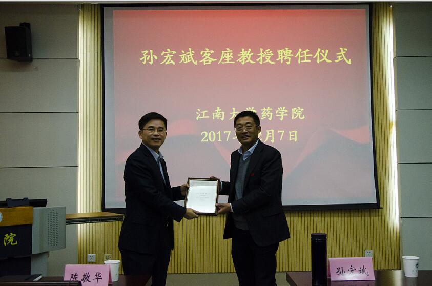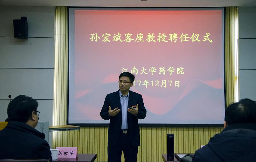 孙宏斌客座教授聘任仪式暨学术报告会于12月7日下午在药学院隆重举行。伟德victor1946副校长陈卫教授出席聘任仪式,为孙宏斌教授颁发客座教授聘书。仪式由药学院副院长(主持工作)陈敬华教授主持。