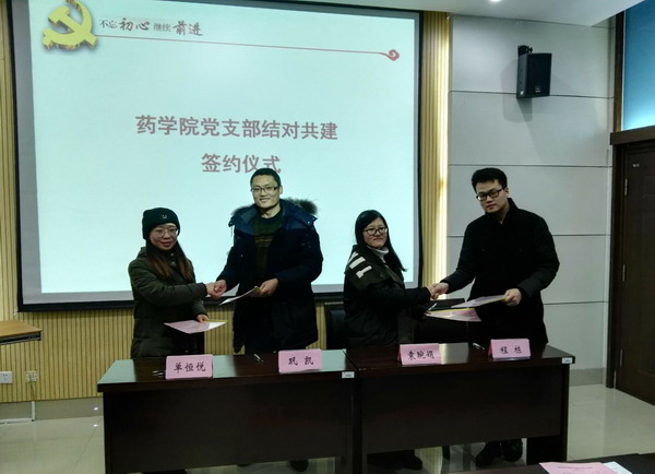 会议最后还举行了换届后新的教师与学生党支部、本科生与研究生党支部结对共建的签约仪式。本科生第一党支部与研究生第一党支部、本科生第二党支部与教师第二党支部的书记作为代表现场签订了支部共建协议。