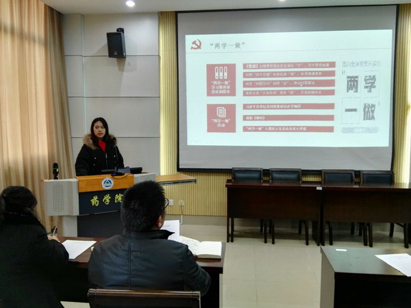 12月18日下午,药学院召开2017年度党支部述职评议会,学院各党支部书记一一进行了述职。会议分教师党支部述职和学生党支部述职两部分进行,由药学院党委副书记、副院长白冰主持,学院全体党委委员、党支部委员共同参加了评议会。