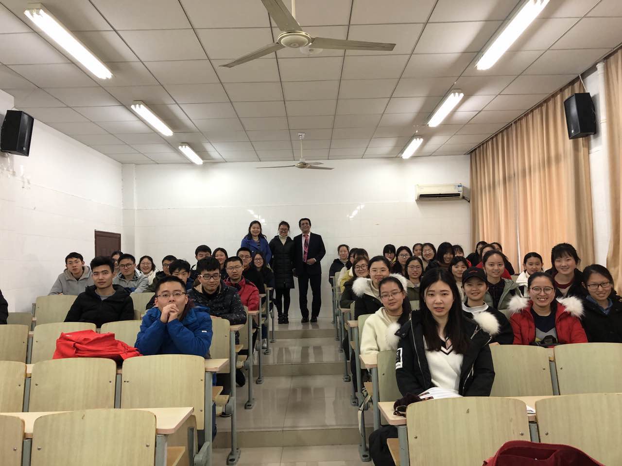 Vishnu教授、骞晶晶博士一行还为药学院学生就“伟德victor1946药学院与奥本大学药学院3.5+1.5本硕连读合作项目”进行了详细介绍,药学院50余名学生聆听了项目介绍。宣讲结束后,Vishnu教授、骞晶晶博士等与有意向的学生进行了深入交流,回答了学生关心的相关问题。