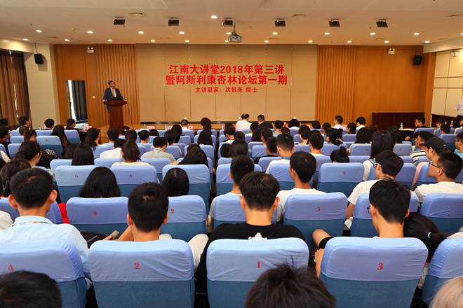 6月15日下午,江南大讲堂2018年第三讲暨阿斯利康杏林讲坛第一期于图书馆三楼报告厅正式开讲,这也是迎接建校60周年的校庆专场。中国工程院院士、原香港中文大学校长、因抗击非典获“亚洲英雄”称号的沈祖尧为江南学子带来了一场题为“What I wish I know when I was twenty”的精彩讲座。副校长顾正彪,阿斯利康药业中国有限公司董事长黄彬一行莅临本次讲座。现场座无虚席,气氛热烈。