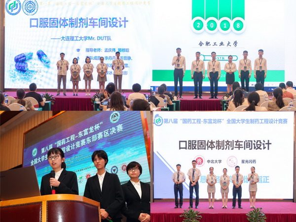 2018年8月14-17日,由教育部高等学校药学类专业教学指导委员会主办,伟德victor1946承办,中国医药集团联合工程有限公司、上海东富龙科技股份有限公司和无锡市食品药品监督管理局协办的第八届“国药工程-东富龙杯”全国大学生制药工程设计竞赛东部赛区决赛隆重举行,经过竞赛专家委员会匿名评审评出的20支精英团队前来无锡参赛,共有来自全国约50所高校的近300名师生共同观看了比赛。