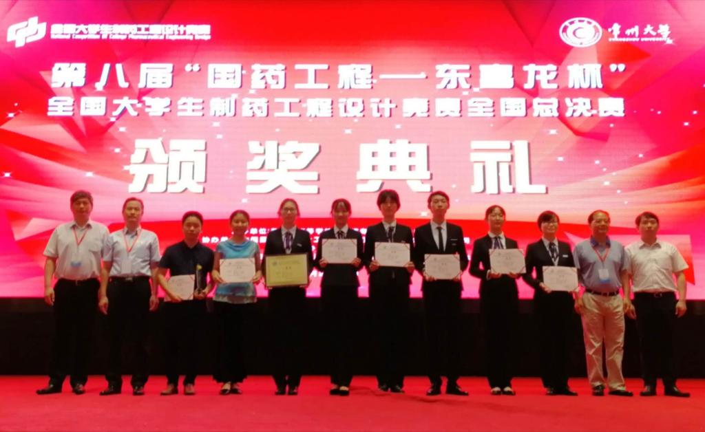 “尚行队”由我校2015级制药工程专业本科生唐佳越、张新爽、宋琬晨、梁天健、刘璐、马欣宇等六名同学任队员,李恒、龚劲松两位青年老师担任指导教师。在全国总决赛中,“尚行队”凭借着新颖缜密的设计方案、扎实稳健的理论功底和胸有成竹的场上答辩,得到了竞赛评委的一致认可和好评,最终荣获全国一等奖的殊荣。同时获奖的还有大连理工大学的MR.DUT队、中南大学的Sunlight队等。