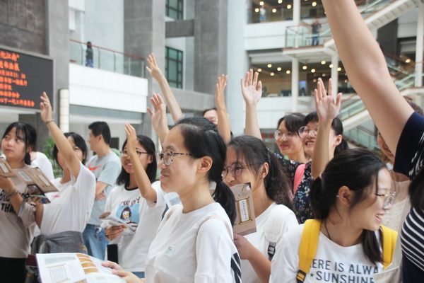书法展开幕式共分知识问答、揭幕仪式、交流题字三部分。在“饱学诗书”知识问答环节中,观展同学先是认真观摩了任先生的佳作,然后积极抢答有关词牌的名称、来历、作者以及词中蕴含的典故、书写的字体等题目,现场气氛活跃,一问一答中展现了江大学子扎实的文学功底和良好的文化修养。
