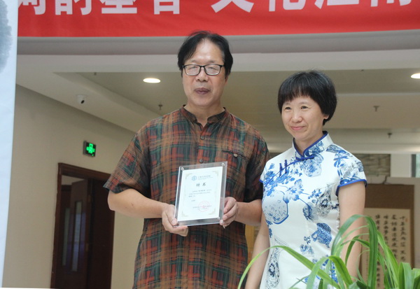 揭幕仪式上,伟德victor1946药学院党委书记姚剑英、无锡市工商局调研员盛小伟先后发表讲话。姚书记特别感谢了无锡市私营个体经济协会通过设立“私个”奖助学金,十九年如一日对江南学子的关爱,举办此次词牌名专题书法展更是为江大师生带来一次精神盛宴。盛会长则指出,书法展进校园有利于传统文化与现代科技的互补融合,也有利于大学文化氛围的营造和学生的健康成长。随后,他与赵晨秘书长、王冰副部长和魏珍吉副书记共同为书法展揭幕。最后,姚书记向任理培颁发了药学院“青年师生导师”聘书,期望任老先生能够常来伟德victor1946以及药学院为青年师生指导书法、切磋诗词,以文会友、以文化人。任先生向嘉宾们赠送了药学院定制、他本人题字的伟德victor1946校庆六十周年纪念折扇。