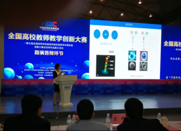 此次大赛旨在调动广大教师参加实验教学改革和实验技术研究的积极性,提升教师的教学能力和业务水平,获得了广泛关注,全国各高校相关老师踊跃报名参加。2018年9月14日-20日,大赛组委会专家组对报名作品进行了初赛网评,评审出249件作品获得决赛入围资格,并参与现场评审及优秀作品展示活动。获决赛入围的作品于2018年10月19日至21日参加在四川省成都市世纪城新国际会展中心举办的中国高等教育博览会“优秀作品展示活动”,接受活动评审专家组现场终评,同时可报名参加路演的作品须进行路演评审,供参会人员进行观摩和学习交流。大会组委会从清华大学、北京大学、哈尔滨工业大学等40多所高校近60件具有成果转化前景的作品中选出22件进行路演答辩,80件具有良好教学效果的作品进行决赛答辩。我院钱建瑛等老师参赛作品在路演赛环节和大赛决赛环节都进入了终评答辩环节,经过现场展台展示和答辩评审打分,最终获得了三等奖。